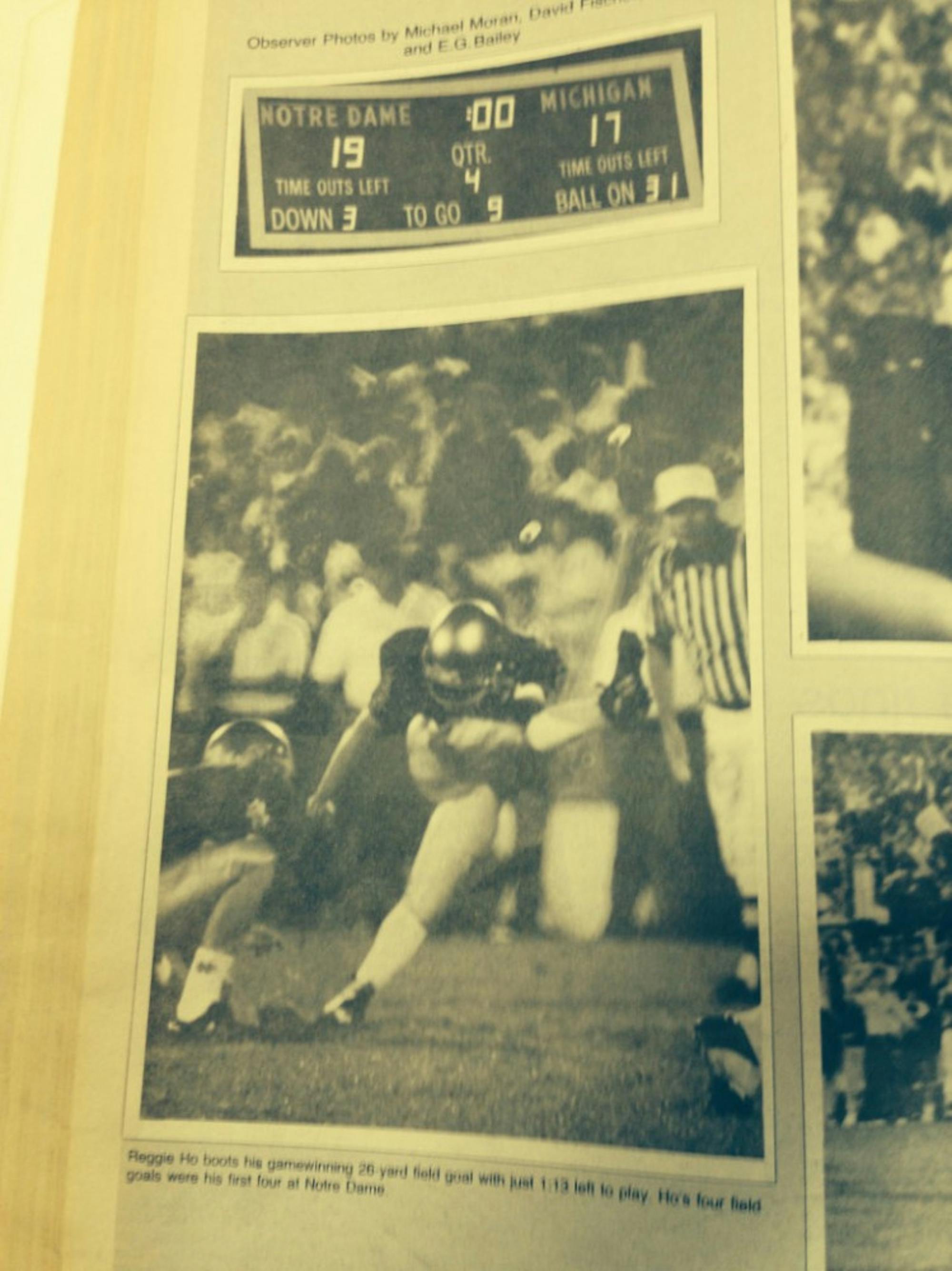 In order to win, Holtz and the Irish had to rely on the unlikeliest of heroes, 5-foot-5 walk-on kicker Reggie Ho. In the opening act of a national championship season — Notre Dame’s last title — Ho drilled four field goals, the last of which split the uprights with 1:19 remaining in regulation and propelled Notre Dame to win No. 1.