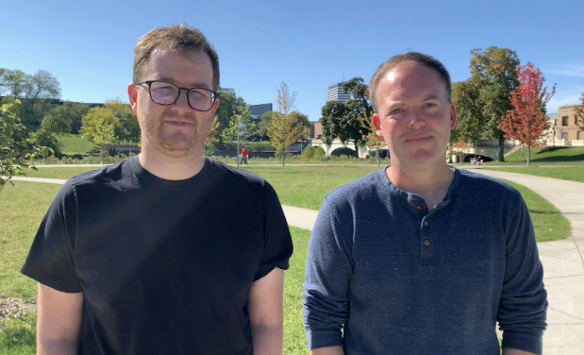 Matt Knapper, left, and Kevin Lawler, right, created the website "Chompion" to connect local South Bend restaurants with community members wanting take-home meal kits during the pandemic.