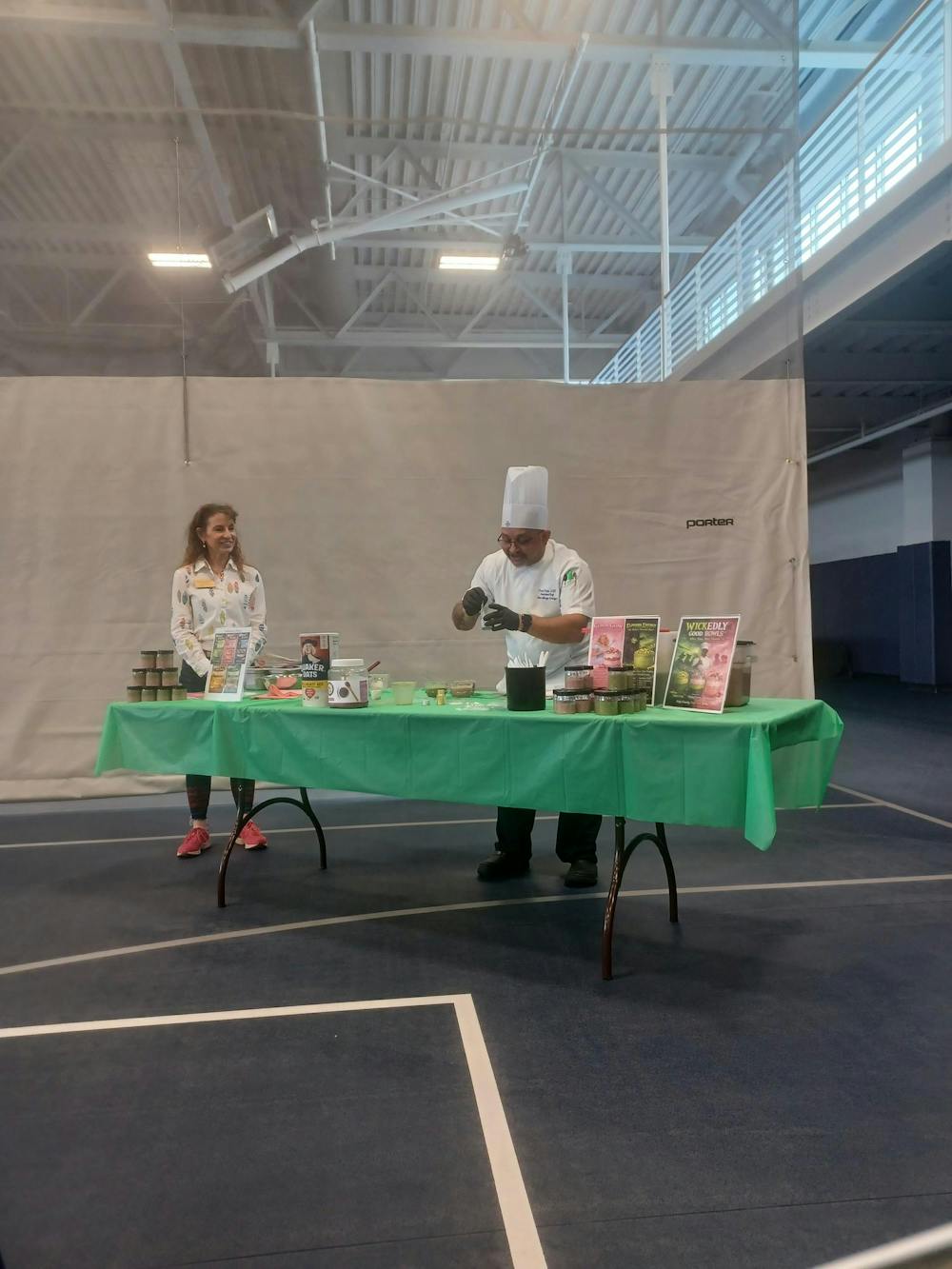 Through a live cooking demonstration, Chef Charu Pant taught students how to make overnight oats and chia pudding for the annual Spring Health Fair. Berhan Hagezom