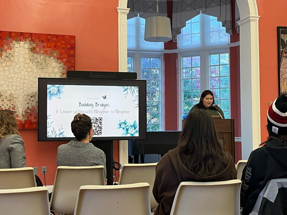 Saint Mary's Belles Unite Borders (BUBs) club invites a nonprofit organization to campus to give a talk on how to get more involved with local immigrant and refugee community. The talk was led by the organization regarding their own programs and advice for students.