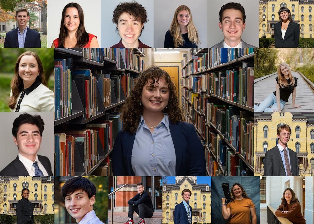 The 2026-27 Observer Editorial Board. Pictured: Aynslee Dellacca at center. Clockwise from top left: Henry Jagodzinski, Sophie Hanawalt, Noah Cahill, Abby Hernan, Zack Pohlman, Grace Tadajweski, Megan Cornell, Peter Mikulski, Lilly Martin, Mariella Taddonio, Duncan Stangel, Ben Hicks, Liam Flynn, Berhan Hagezom, Luke Foley and Annelise Demers.