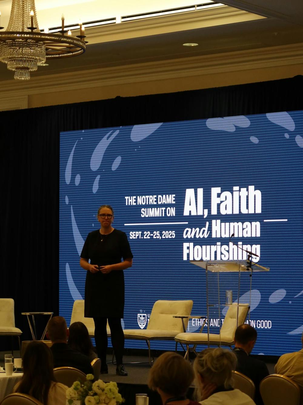 Professor and director of Notre Dame’s Institute for Ethics and the Common Good and director of the Ethics Initiative gives her keynote address at the Notre Dame Summit on AI, Faith and Human Flourishing. Redmond Bernhold