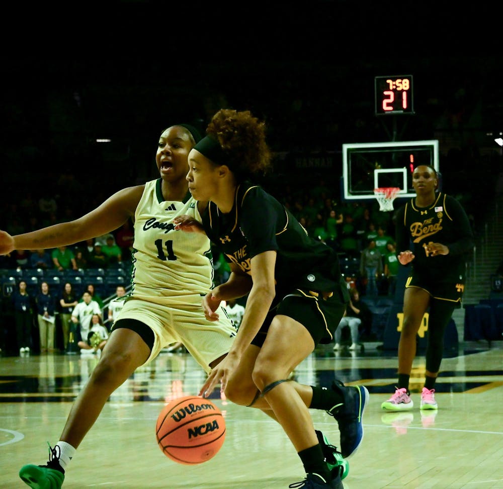 Junior guard Hannah Hidalgo drives into the lane in Notre Dame's 116-58 win over Chicago State inside Purcell Pavilion on Nov. 9, 2025. Hidalgo leads the nation in scoring with 28.8 point per game in 2025. Keira Jones