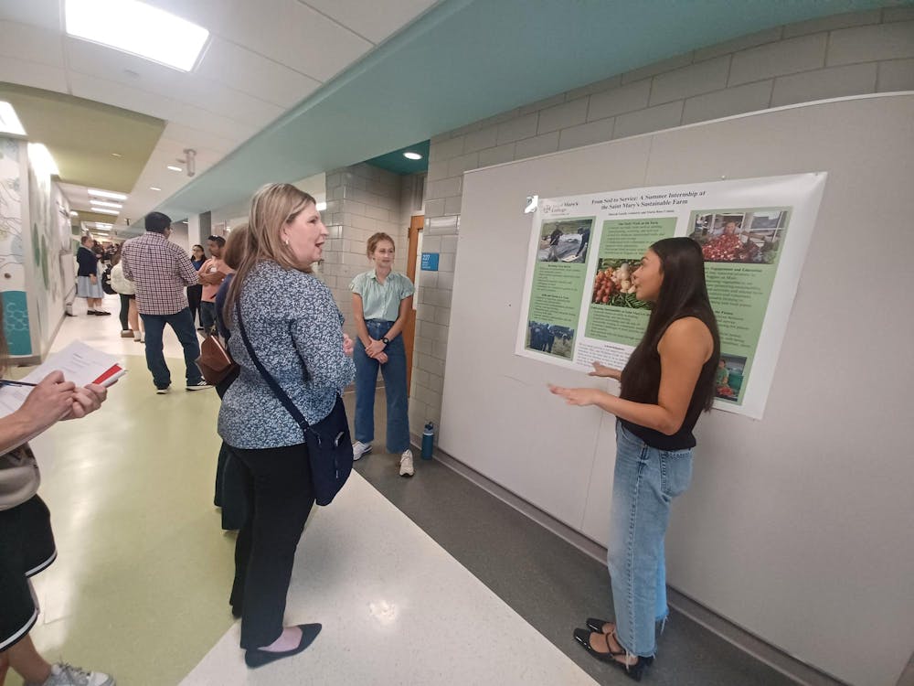 Sheccid Guiterrez and Maria Coman talked to students and faculty during the annual STEM Fall Poster Day. They discussed their experience working at the Sustainable Farm over the summer.