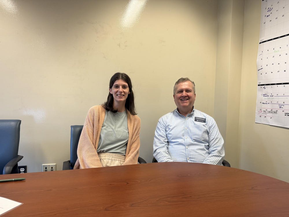 Peer Listening Program directors Camille McDonald, assistant director for leadership development and community engagement at the McDonald Center and Mark Hummell, a behavioral health clinical case manager with the University Counseling Center, pose for a photo.