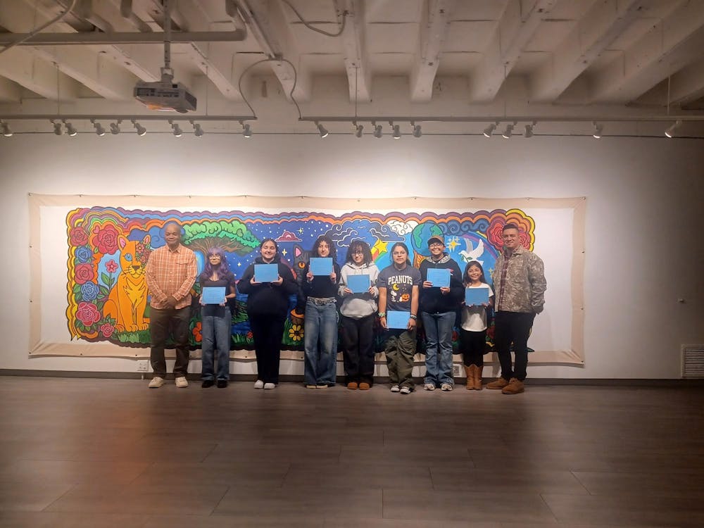Student artistss were awarded plaques for their time during the seven week project, which were handed out by Moreau Gallery director Ian Weaver and local artist Freddy Rodriguez. The plaques were laser printed at the college's SPARK Lab.