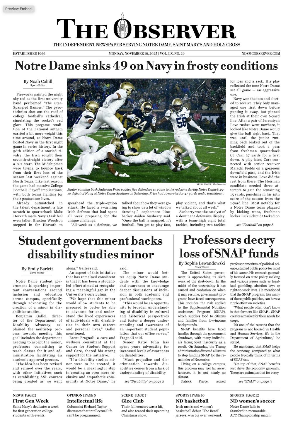 The front page of the print edition of The Observer for Monday, Nov. 10, 2025.