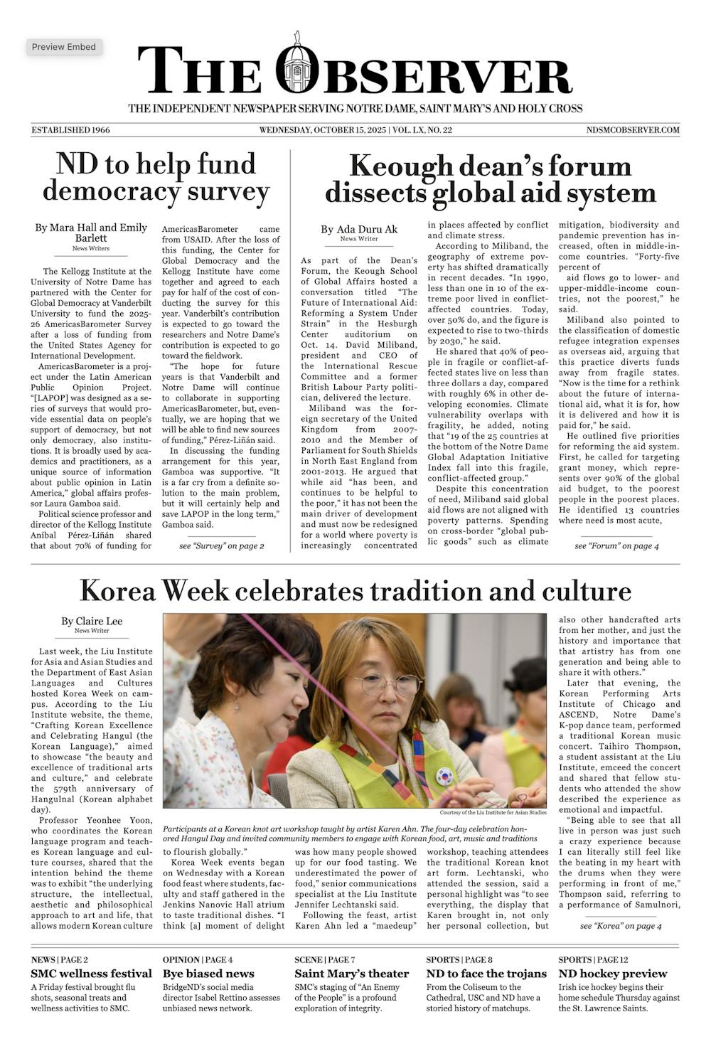 Front page of the print edition of The Observer for Wednesday, October 15, 2025. Gray Nocjar