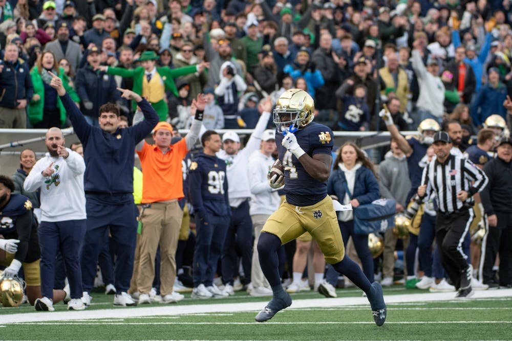 Junior running back Jeremiyah Love runs for a touchdown during Notre Dame’s 70-7 defeat of Syracuse at Notre Dame Stadium on Nov. 22, 2025.