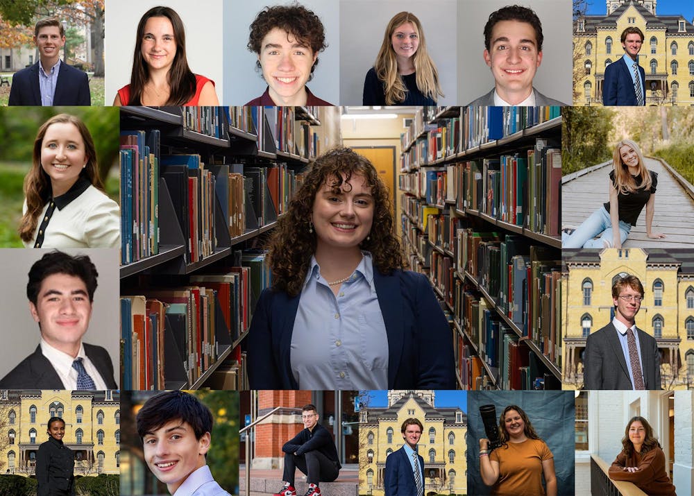 The 2026-27 Observer Editorial Board. Pictured: Aynslee Dellacca at center. Clockwise from top left: Henry Jagodzinski, Sophie Hanawalt, Noah Cahill, Abby Hernan, Zack Pohlman, Grace Tadajweski, Megan Cornell, Peter Mikulski, Lilly Martin, Mariella Taddonio, Duncan Stangel, Ben Hicks, Liam Flynn, Berhan Hagezom, Luke Foley and Annelise Demers.