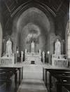 The Holy Spirit Chapel, originally named the Chapel of the Holy Ghost, taken just after the construction of Le Mans Hall was completed but prior to any students entering the chapel or the dedication Mass on April 24, 1926. Photo courtesy of Saint Mary’s College Archives.