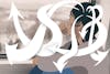The since-removed fallen “Endless” sculpture outside of the Raclin Murphy Museum of Art. Photo courtesy of Frank Qian.