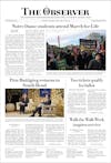 Notre Dame students carry a banner reading “Irish fighting for life” in Washington, D.C. during the March for Life Friday. Courtesy of Jake Struby.