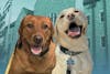 Órla and Finn, Notre Dame Police Department Comfort K9s. Órla and background photos courtesy of Mara Hall. Finn photo courtesy of NDPD Officer Stephanie Palmer.
