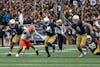 Junior and senior tight ends Ty Washington and Eli Raridon trail behind junior running back Jeremiyah Love as he gets by Orange linebacker Gary Bryant III during Notre Dame's 70-7 victory over Syracuse on Nov. 22, 2025. Both Love and Raridon will wait to hear their names called during this weekend's NFL draft.