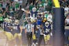 Junior wide receiver Jordan Faison is lifted in the air after scoring a touchdown against Purdue at Notre Dame Stadium on Sept. 20, 2025.