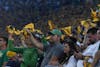 Fans at Notre Dame Stadium wave towels and cheer during Notre Dame's game against Texas A&M on Sept. 13, 2025.