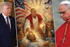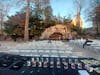 During the multifaith prayer service, signs were seen across the stairs at the Grotto of Our Lady of Lourdes in support of sexual violence survivors.