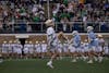 A Notre Dame player celebrates during a home game against No. 1 North Carolina on April 11, 2026.
