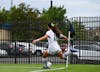 Senior midfielder Laney Matriano tees up a corner kick in Notre Dame's 4-0 win against Cincinnati in Alumni Stadium on Aug. 21, 2025. Matriano has already dished out four assists in six contests for the Irish in 2025.