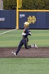 Graduate outfielder Drew Berkland runs the bases in the Irish mercy-rule victory over Western Michigan.