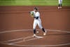 Senior pitcher Micaela Kastor dominates on the mound, with her signature bubble braid on display.
