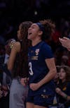 Junior guard Hannah Hidalgo celebrates during Notre Dame’s 83-73 victory over Ohio State at the Jerome Schottenstein Center in Columbus, Ohio on March 23, 2026.