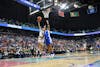 Graduate forward Maddy Westbeld rises up for a top-of-the-key jumper in Notre Dame's 73-64 ACC Tournament Quarterfinal victory over California at the First Horizon Coliseum on March 7, 2025. After an early-season injury, Westbeld has been an integral part of the Irish frontcourt.