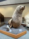 A Steller sea lion on display in the galleria of the Jordan Hall of Science by the Museum of Biodiversity on Feb. 25, 2026. A fun fact on an identifying tag at the bottom reads "this male sea lion weighed ~ 2000 lbs."