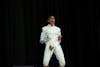 Notre Dame freshman Kruz Schembri celebrates his victory over LIU’s Soma Somody during the 2026 NCAA Fencing Championships on March 22 in the Joyce Center.