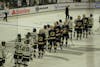 Players from Notre Dame and Michigan State shake hands after the Big Ten Tournament semifinal game at Munn Ice Arena on March 15, 2025.