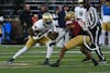 Jeremiyah Love stiff-arms a defender during Notre Dame’s victory over USC on Oct. 18.