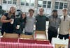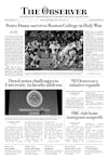 Members of the Department of South Bend Engagement host a South Bend Coffee Shop event outside O'Shaughnessy Hall to celebrate National Coffee Day. Courtesy of Jacob Arulandu.